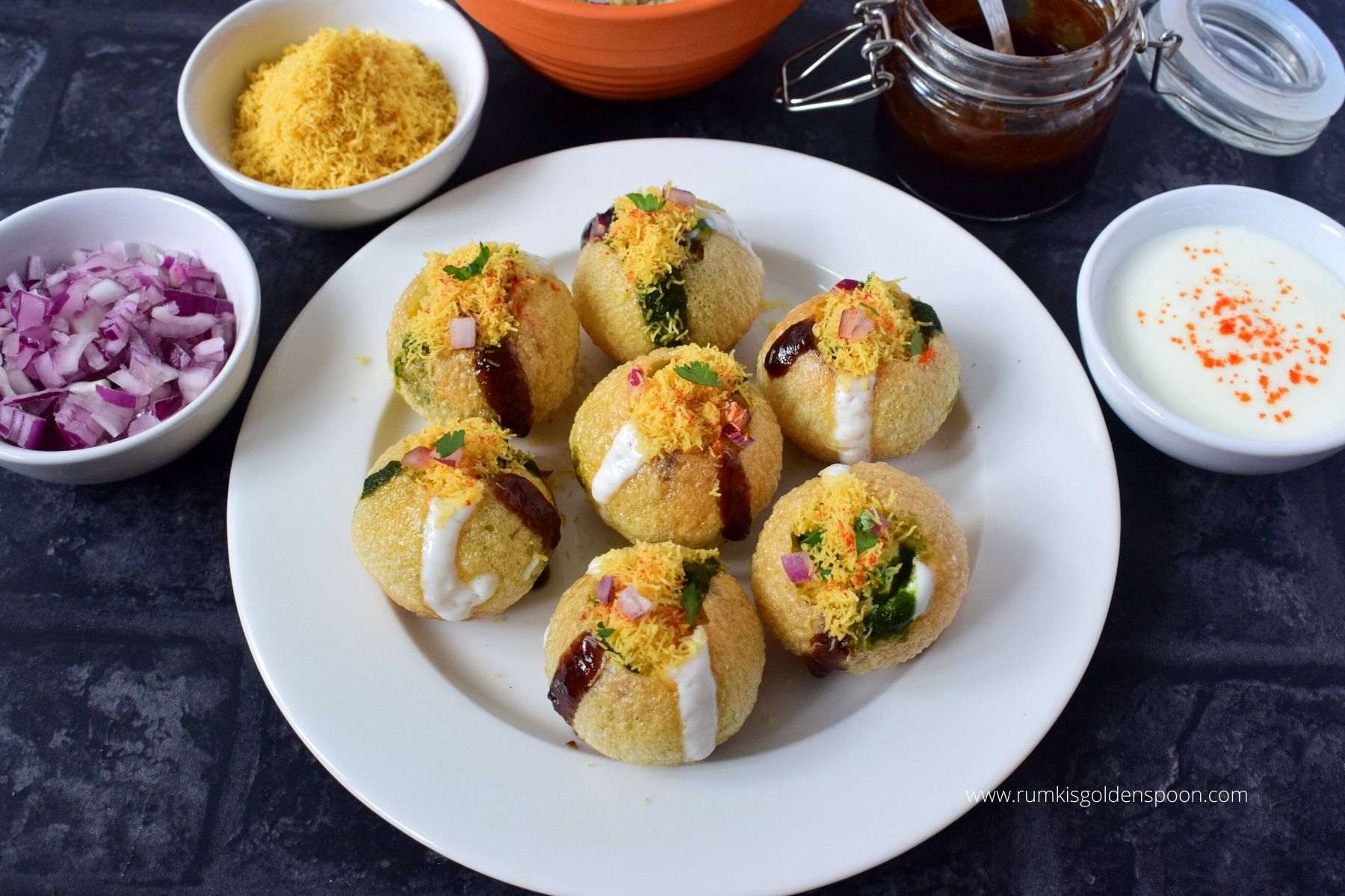 Crispy shells filled with a mixture of spicy tamarind water, potatoes, chickpeas, and various spices. Awesome fuchka really Awesome.